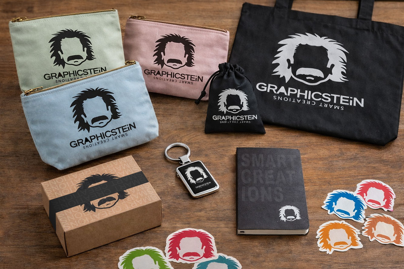 The naming and visual identity were both inspired by the word “smart”—smart creations, clever ideas. That naturally led to the figure of Albert Einstein, a universal symbol of brilliance and originality. Hence, the name “Graphicstein” was born.