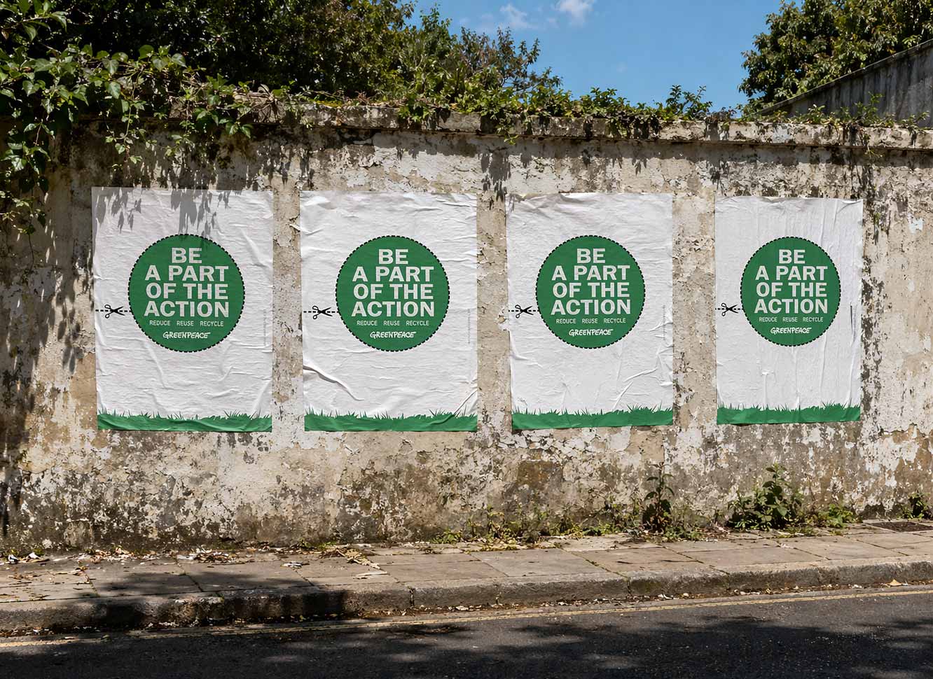 For Greenpeace’s 2009 campaign, I designed a poster, which was also adapted into a flyer, featuring the slogan ‘BE A PART OF THE ACTION’. I also included ‘Reduce, Reuse, Recycle’ to reinforce the message of sustainability.